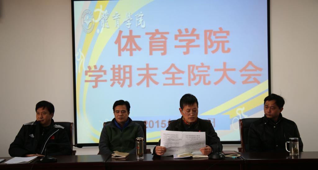 会上,王勤院长首先详细传达了学校务虚会上郑书记和甘校长的讲话精神。王院长还对2015年工作提出要求和期望。一是继续做好教学常规工作,对现行部分教学大纲的进行修订,为新学期教学做好准备;二是继续加强教研室建设,开展教研活动,充分发挥教研室职能,严格听课制度,全面提升教学质量,发挥教研室积极作用;三是进一步修订完善学院各项规章制度,提高各科室教研室工作执行力;四是借国家近期在体育方面出台的一系列政策规划学院发展思路,共同推进学校学院发展。会上,王勤院长还就2014年学院存在的问题一一做了剖析,希望全体职工发扬特长,改进不足,努力工作,为2016年的教学评估做好本职工作。