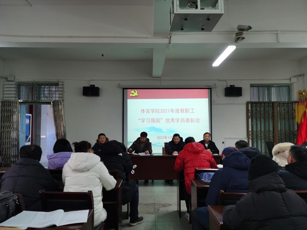 为深入学习宣传贯彻习近平新时代中国特色社会主义思想,做好教职工思想政治教育工作,树立典型,表彰先进,进一步巩固“学习强国”平台的学习成效,营造善于学习、勇于实践的浓厚氛围。1月14日下午,XK星空在向学楼301会议室召开2021年度教职工“学习强国”优秀学员表彰会。学院领导和全体教职工参加了会议,会议由院党委书记付和忠主持。