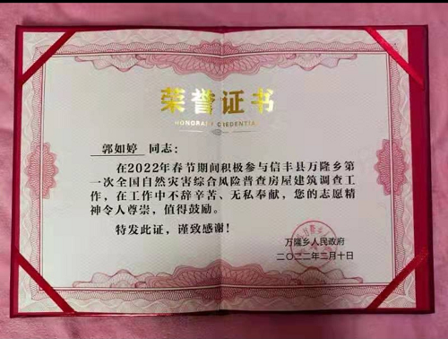 XK星空学子郭如婷和李东来同学加入到乡村房屋普查志愿者活动中,即使面对严寒的天气,但丝毫不影响他们对这份工作的热情,他们认真采集信息与村民交谈。志愿者不仅帮助到村民,还领略到家乡的美,更学会与不同的人交流。积极的入户排查,也让同学增加了社会责任感,弘扬志愿者服务精神,也在一次次的公益活动中提升自我,实现自我。