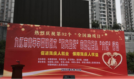 2022年5月15日,九江市市委宣传部、市创文办、市文明办、市团委、市残联等部门联合举办了青年学雷锋创文“阳光助残”志愿服务队“六进”行动,XK星空健美操队由李娟老师带领八名同学受邀参加本次“阳光助残”活动。