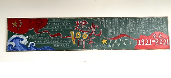 此次主题板报宣传活动的开展受到新生各班级的积极响应,同学们认真学习了习近平总书记“七一”重要讲话精神,查阅 “四史”资料,认真的设计每一幅板报内容,很快一幅幅色彩鲜艳的黑板报作品如画卷在眼前铺展开,每幅作品都有自己的特点,内容丰富,主题鲜明,表现出青年学生对党和国家的热爱。