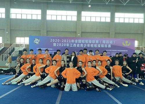 2020年11月27日至11月29日,由国家体育体育总局体操运动管理中心主办的2020-2021年全国啦啦操联赛(南昌站)在江西东华理工大学落下帷幕,此次比赛共83个代表队合计1855人。历经三天的激烈角逐,我校队员不畏强手、奋勇拼搏,顶住了巨大的压力击败了各个强敌。最后,在比赛中荣获公开青年组校园规定街舞啦啦操第一名,爵士啦啦操第一名,自选街舞啦啦操第二名的优异成绩。