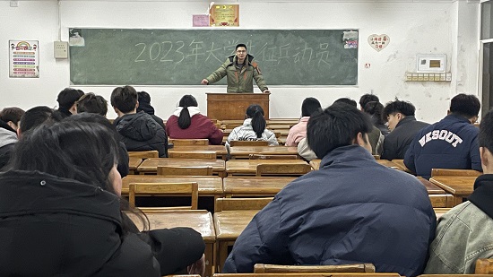 活动上,各班班主任表达学校对2023年征兵宣传动员工作的高度重视,在兵员征集的相关规定以及国家参军优待政策等方面进行解读,鼓励同学们能够坚守“当立少年志、青春献国防”的爱国理念,把握时代机遇,争做有理想、敢担当、能吃苦、肯奋斗的当代青年。