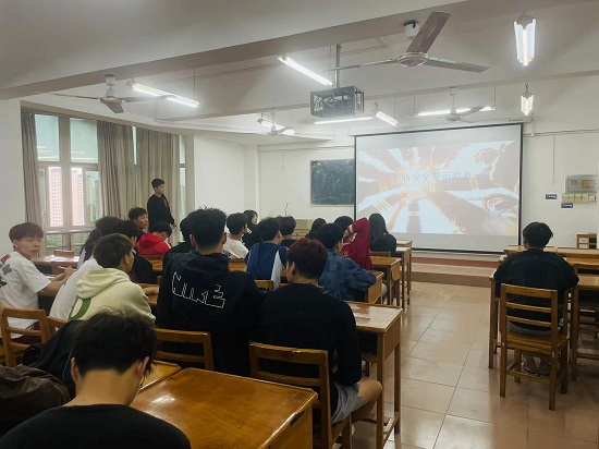 活动中,班主任老师们组织大家观看了《又双叒叕在高校,发生火灾!》消防安全警示的教育片,提醒同学们在宿舍中容易产生消防安全的物品和行为,向同学们介绍在学生宿舍中防火、逃生、警报等消防安全技能,如何掌握自救和互救的能力。