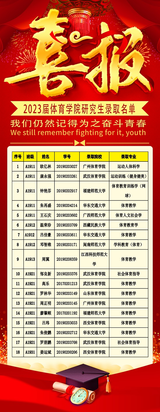 2023年,星空考研工作再上新台阶,2023届共有183名毕业生,其中60余人参加研究生招生考试,上线24人,成功录取18人,录取率28.57%!