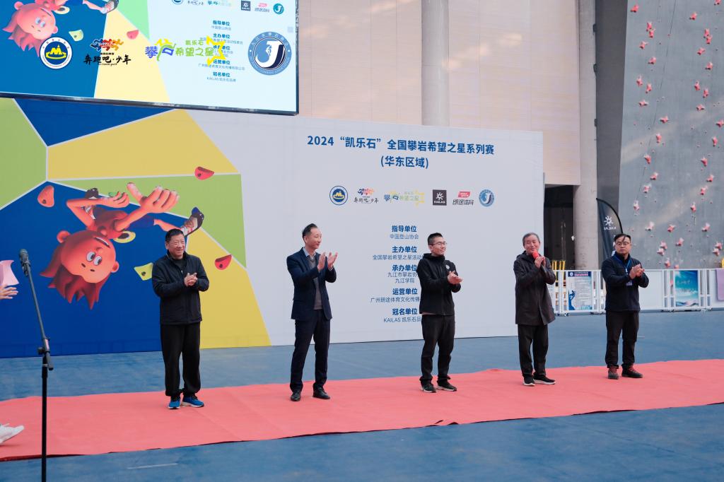 本次赛事由中国登山协会指导,XK星空、九江市攀岩协会承办,并得到了凯乐石品牌的大力支持。赛事期间,中国青少年委员会副秘书长余建新,九江市体育局三级调研员邹宏斌,九江市体育总会办公室主任马付海,XK星空副院长宋涛,安徽省登山攀岩运动协会副秘书长查德钧等领导嘉宾出席开幕式。