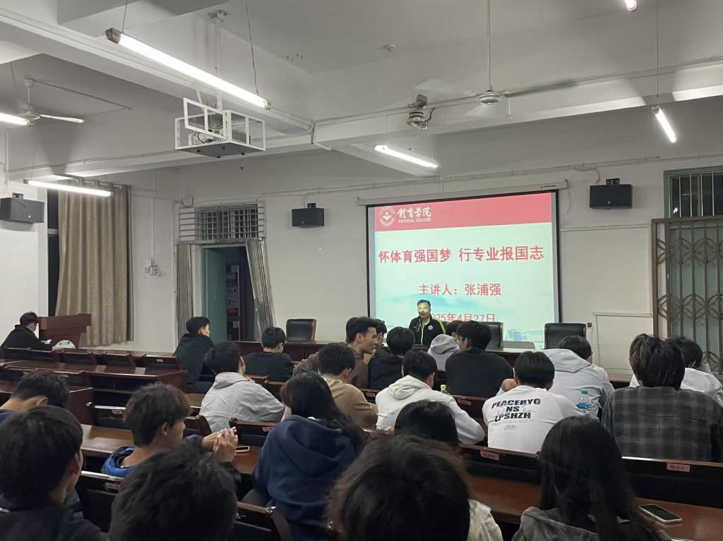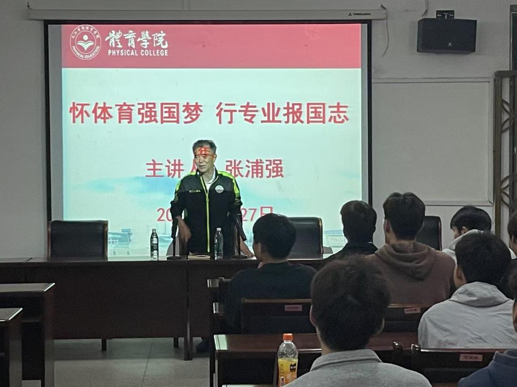 为深入贯彻落实体育强国战略,充分发挥老同志在关心下一代工作中的积极作用,4月27日晚,XK星空在向学楼301会议室举办“怀体育强国梦,行专业报国志”主题讲座。本次讲座邀请到校关工委委员、“五老”成员、原XK星空党委书记张浦强同志作专题辅导,学院足球专项教师卢波博士以及足球专项60余名同学到场聆听。