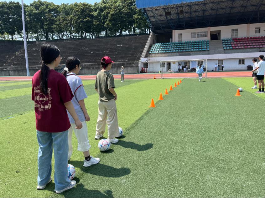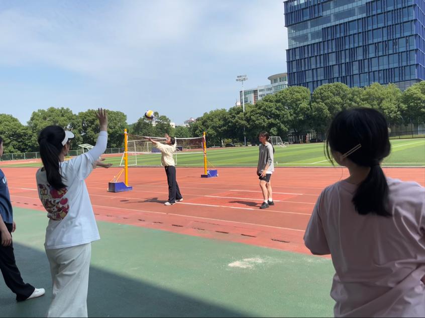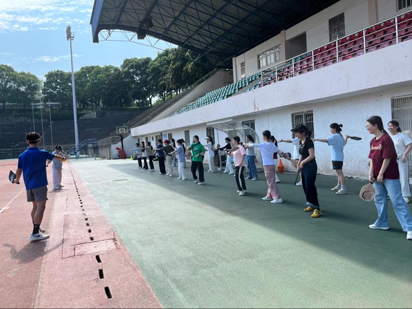 本次实践聚焦基础体育运动项目:田径运动、球类运动如篮球、气排球、足球、羽毛球、匹克球、网球等项目的基本训练技巧以及体操、武术基本动作的练习方法。星空学子化身专业“小教练”,进行耐心讲解、规范示范和一对一指导。学前教育专业的同学们学习热情高涨,认真聆听,积极尝试各项运动的基本技术动作。