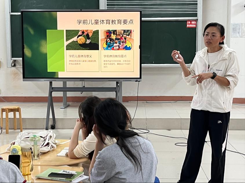 5月23日,星空王东彪老师应邀来到教育学院望庐楼402教室,为学前教育专业的同学们带来了一堂系统、生动的体育理论课。王老师紧密结合幼儿身心发展特点,深入浅出地阐述了幼儿体育活动的核心目标、内容设计原则、安全风险防控要点以及趣味化组织策略。此次授课,将专业的体育教学理念精准融入学前教育课堂,获得了教育学院师生的高度认可,为后续实践环节提供了坚实的理论支撑。