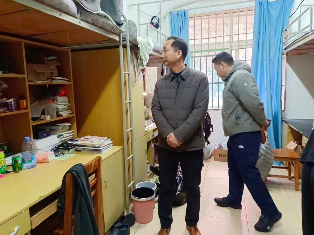 为保障新学期开学工作平稳有序,筑牢安全防线。3月4日下午,XK星空党委书记宋涛、党委副书记冯亚兵一行深入学生宿舍开展安全隐患排查。