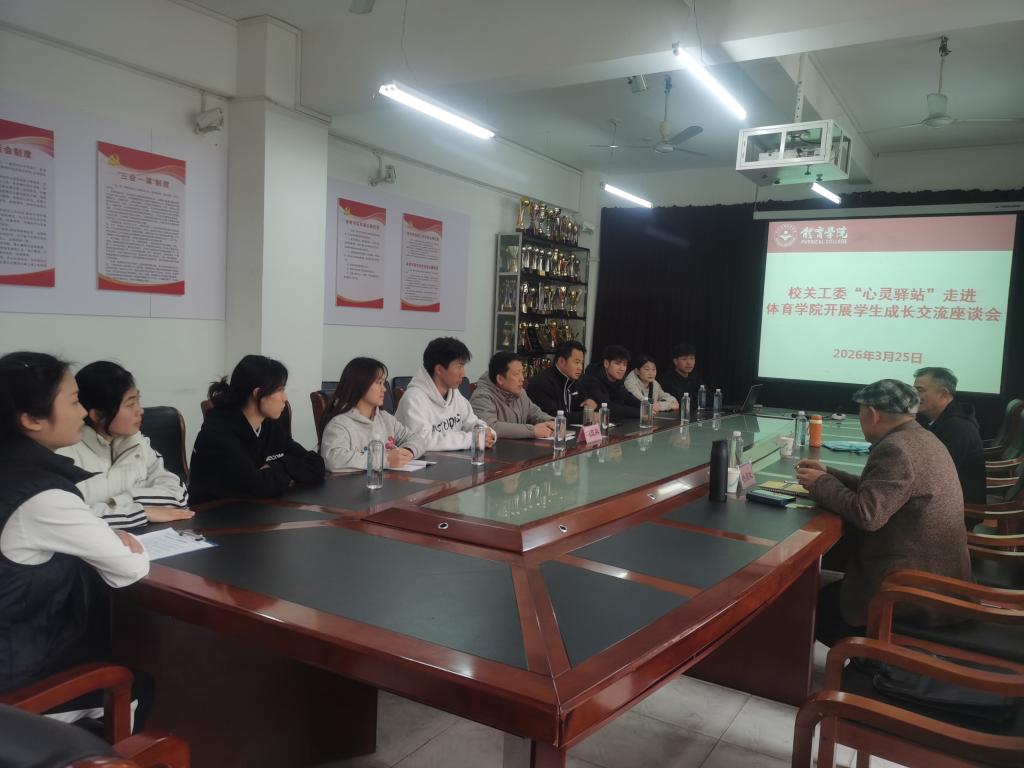 为深入推进立德树人根本任务,充分发挥校关工委在青年学生思想引领和成长关怀中的独特优势。3月25日下午,学校关工委品牌活动“心灵驿站”走进XK星空,在向学楼311会议室开展学生成长交流座谈会。校关工委“五老”代表张浦强、杨桢斌,学院办公室主任胡哲明、辅导员及学生代表参加活动。会议由学院党委副书记冯亚兵主持。