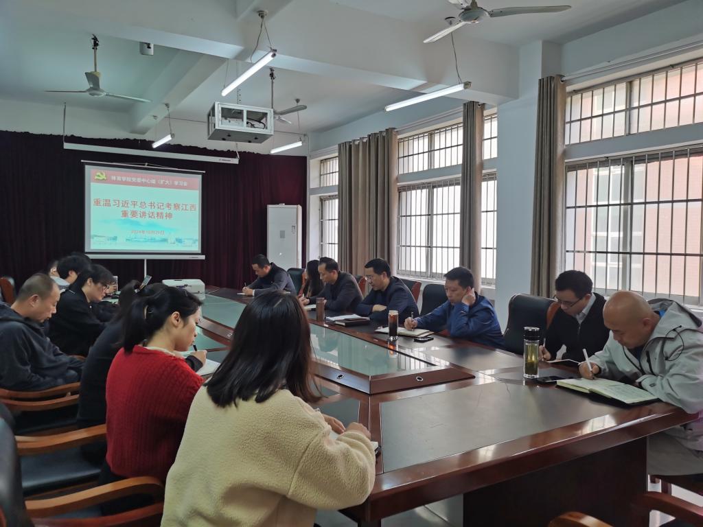 10月29日上午,XK星空召开党委中心组(扩大)学习会,重温习近平总书记考察江西重要讲话精神,深入学习领会习近平总书记关于意识形态工作的重要论述。学院领导、科室负责人、教研室主任、党支部书记参加了会议,会议由院党委书记付和忠主持。