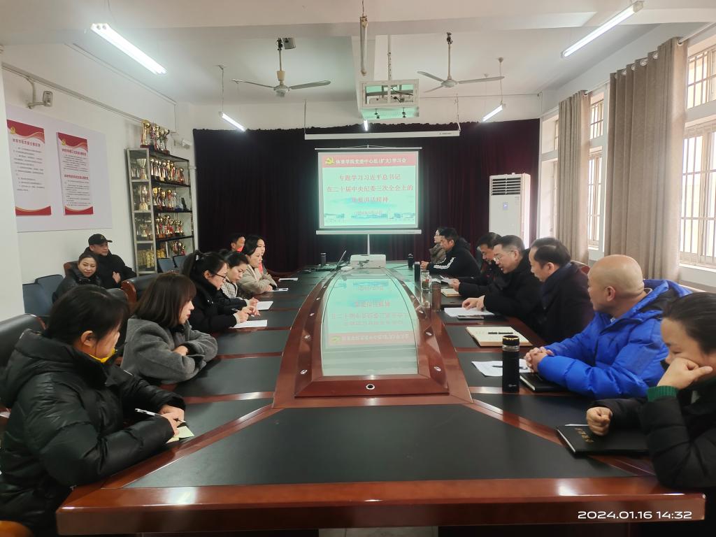 1月16日下午,XK星空在向学楼311会议室召开党委中心组(扩大)学习会,专题学习习近平总书记在二十届中央纪委三次全会上的重要讲话精神。学院领导、科室负责人、党支部书记参加了会议,会议由院党委书记付和忠主持。