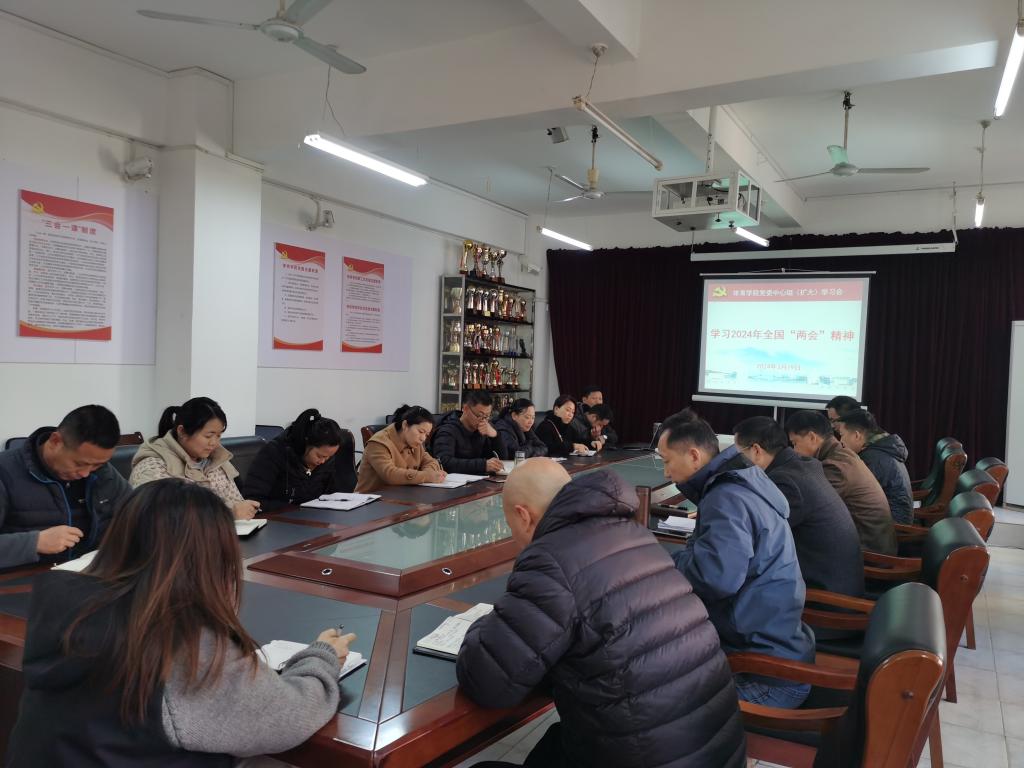 3月19日上午,XK星空在向学楼311会议室召开党委中心组(扩大)学习会,深入学习全国两会精神和习近平文化思想。学院领导、科室负责人、党支部书记参加了会议,会议由院党委书记付和忠主持。