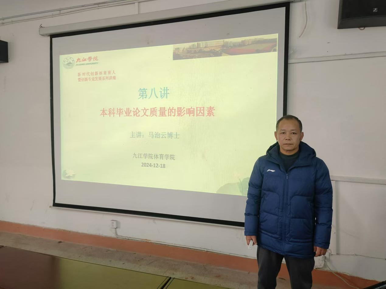 2024年12月18日,新时代创新体育育人暨创新专业发展系列讲座第八讲开讲了。本次邀请XK星空教师马治云博士为做题为《本科毕业论文质量的影响因素》的讲座。该讲座内容是马老师主持的江西省教育科学“十四五”规划2023年度课题《本科毕业论文质量促进的系统动力学建模与仿真研究》的系列研究成果之一 。