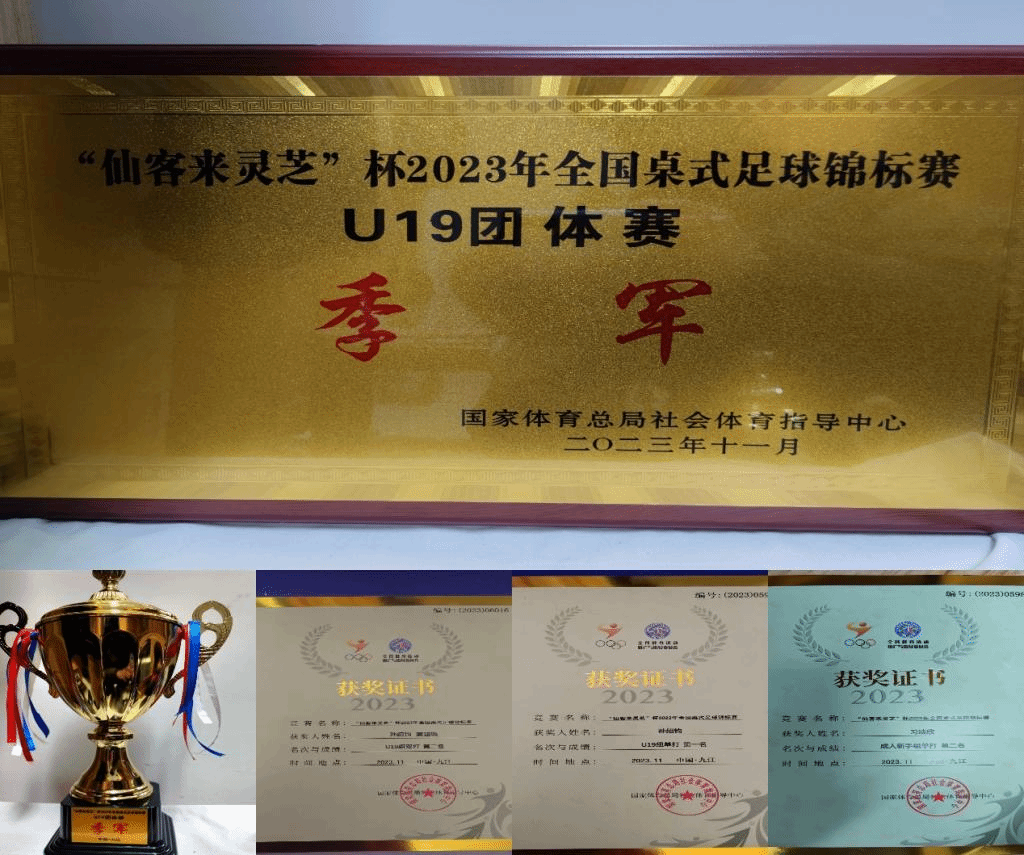 同样作为我校桌式足球校队选手曾毓春和刘嘉晨分别荣获成人组初级组单打第四名,成人组新手组单打第四名。