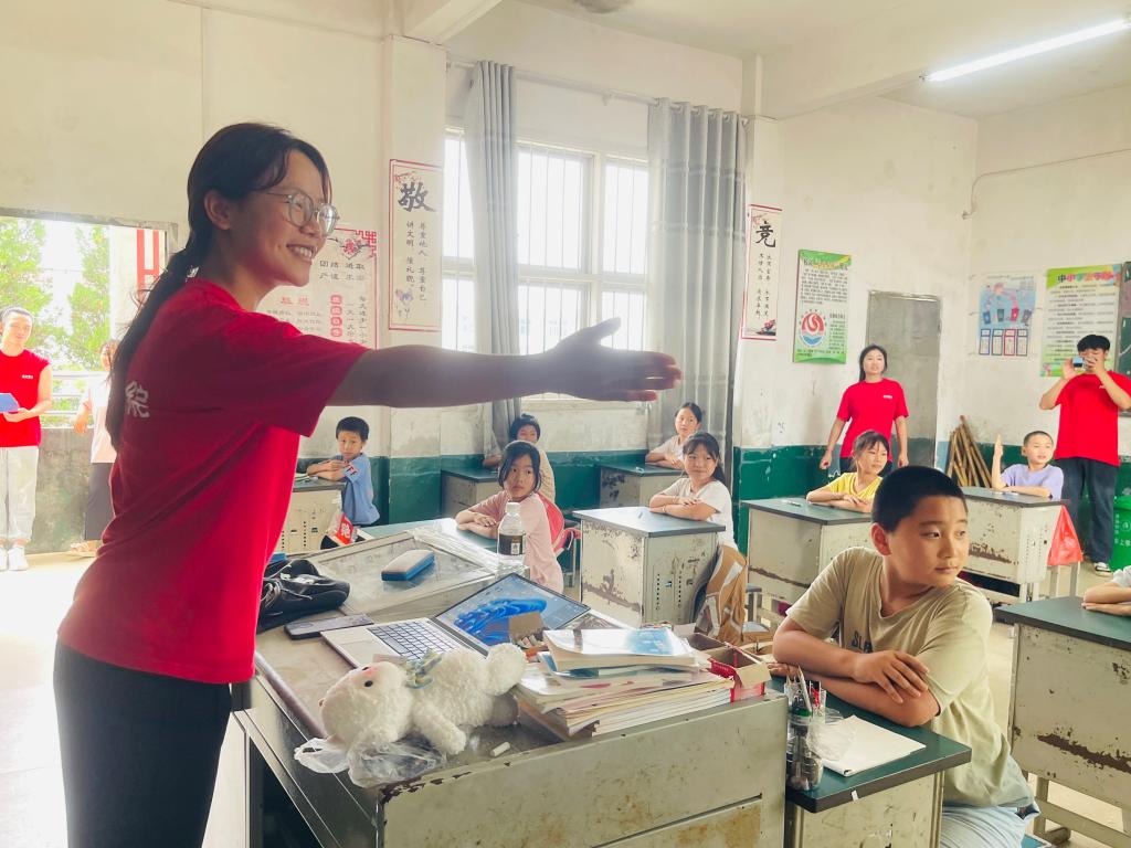 东上乡学校的“防溺水”教育课堂上,同学们结合鲜活案例与实操演示,为孩子们筑牢生命安全防线;“00 后说党的二十大” 说唱宣讲,将理论转化为青春韵律,让党的声音在节拍中浸润童心;“方言大挑战” 以趣味竞答推广普通话,让语言学习充满欢乐与惊喜。多样化的教学形式,如同打开知识宝库的钥匙,为乡村学子开启探索世界的新窗口。