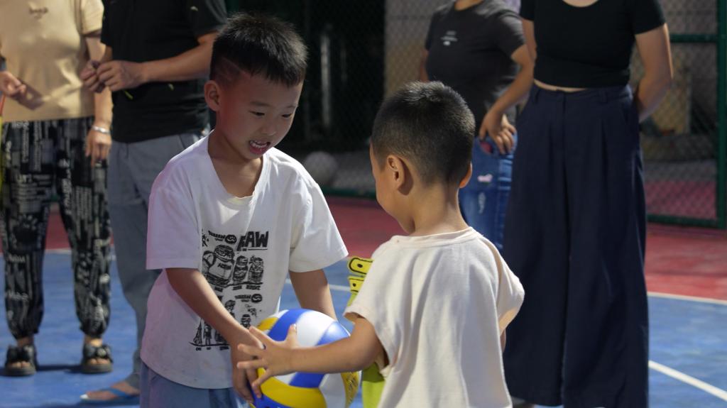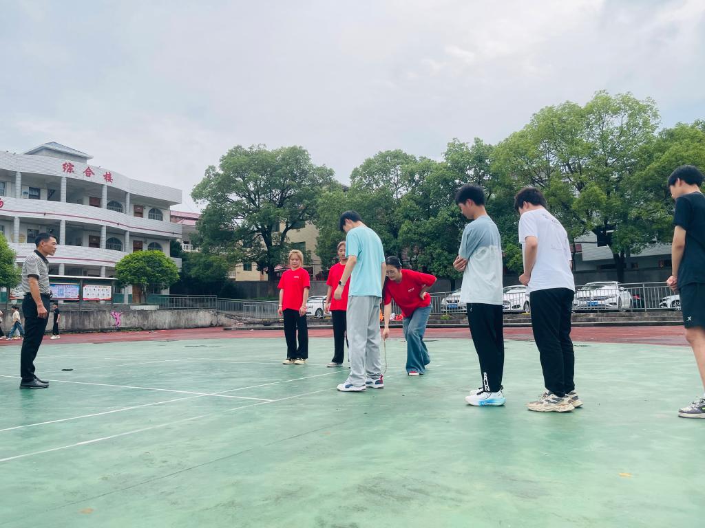 瑶前村广场前“薪火相传” 篮球接力赛上,孩子们化身小红军,紧握排球穿梭于“长征赛道”,每一次全力奔跑都是对革命精神的致敬,每一次精准传球都凝聚着团结力量;“飞夺泸定桥” 套环游戏中,五彩套环划出信仰弧线,套住的不仅是模拟物资,更是跨越时空的红色传承。运动与红色文化的深度交融,让革命精神在孩子们的欢声笑语中生根发芽。