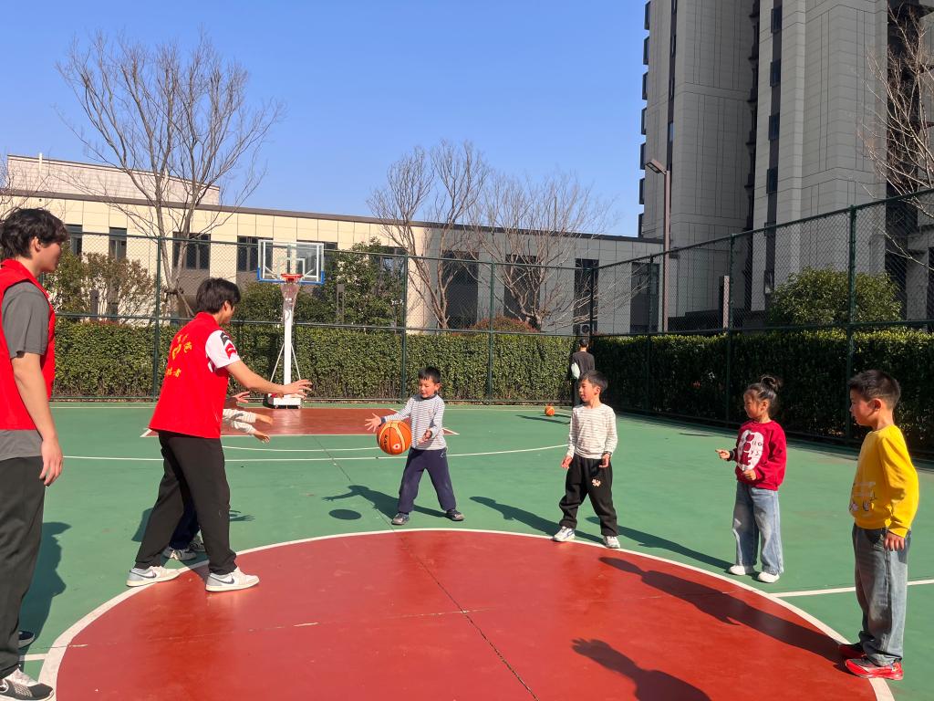 活动现场,同学们提前细致布置场地、规范悬挂横幅,精心划分运动教学区与心理交流区,为孩子们营造安全、温馨且充满活力的活动氛围。同学们一方面结合困境儿童的身体特点与兴趣偏好,分组开展足球、羽毛球、篮球、跳绳等项目教学,以专业素养践行雷锋精神里的“奉献与担当”;另一方面担当 “心理疏导员”,通过趣味小游戏、一对一倾心交流等形式,用通俗易懂的方式普及心理健康知识,引导孩子们学会表达情绪、缓解压力,鼓励他们勇敢展现自我、接纳自我。
