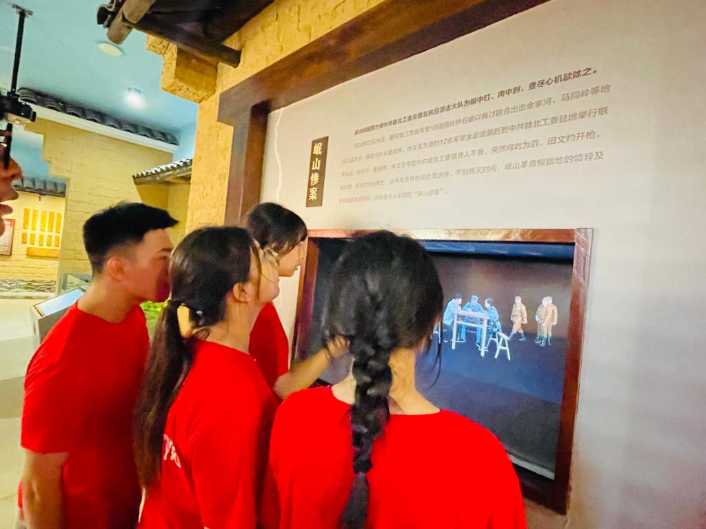 跟随历史的车轮,队员们首先来到金盘村赣北工委旧址。赣北工委旧址是赣北游击队的诞生地,是我党在第二次国内革命战争和抗日战争时期领导赣北人民反对国民党反动派和粉碎帝国主义侵略的据点。师生们怀着崇敬的心情,依次参观了各个展厅,通过一幅幅珍贵的历史图片、一件件真实的文献实物,深入了解了赣北工委在革命战争时期的英勇斗争历程和伟大贡献,感受着幸忠荩、刘为泗等革命烈士为人民的解放事业抛头颅洒热血的壮烈情怀。