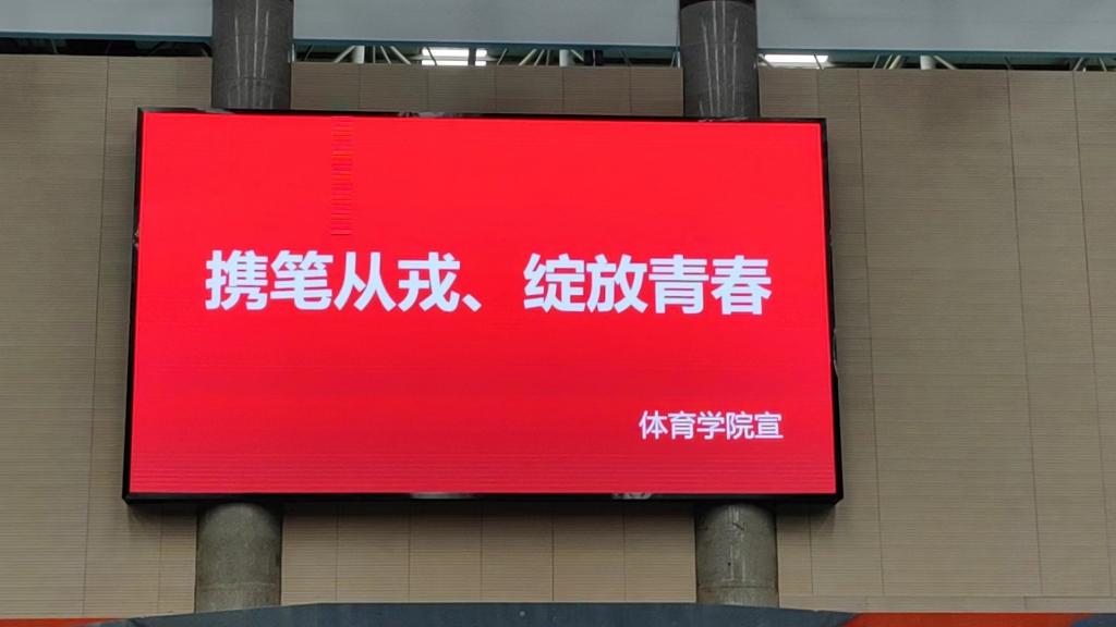 同时,XK星空利用北区综合训练馆电子显示屏进行征兵宣传。