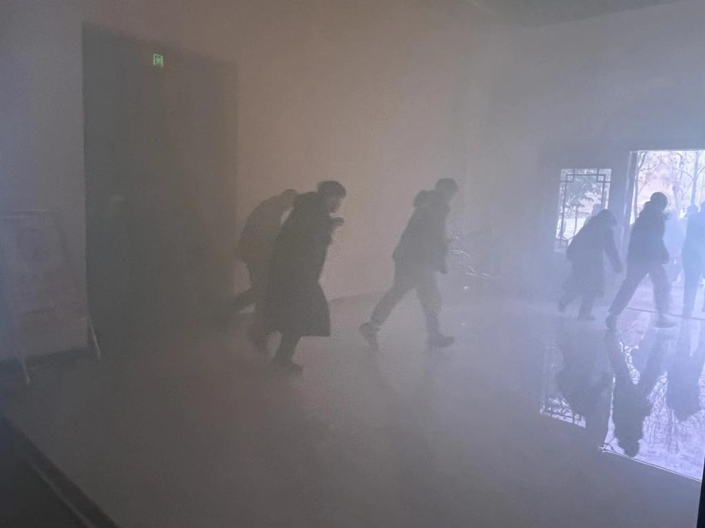 演练前,陶涛老师通过PPT向学生强调火灾的危害性,仔细讲解火灾中逃生中防烟要点、“三分钟自救”以及常用灭火方法等注意事项随后,陶涛老师释放烟雾弹,模拟突发火灾情形下的应急疏散随着各楼层安全员吹响紧急疏散哨,辅导员迅速组织学生按照消防处置程序进行自身防范,沿着指定路线快速、有序地撤离到安全地带,整个演练过程科学、规范、有序、顺畅达到预期目的。