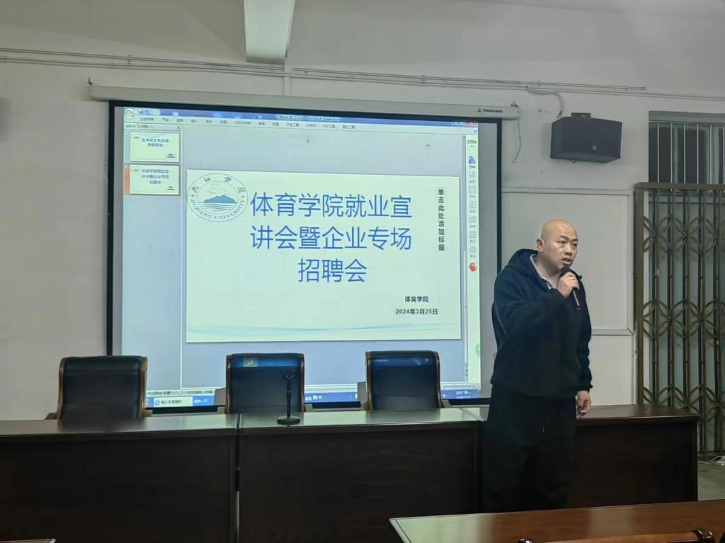 会上,九江瑞迪体育发展有限公司和九江九州体育发展有限公司两家用人单位提供就业岗位,企业负责人分别通过展示公司宣传片详细介绍了公司前景、企业文化、用人需求、薪资待遇、晋升渠道、招聘条件等方面情况,通过介绍2024届高校毕业生就业形势,帮助同学们了解职业与社会行业的关系,充分选择好就业目标。
