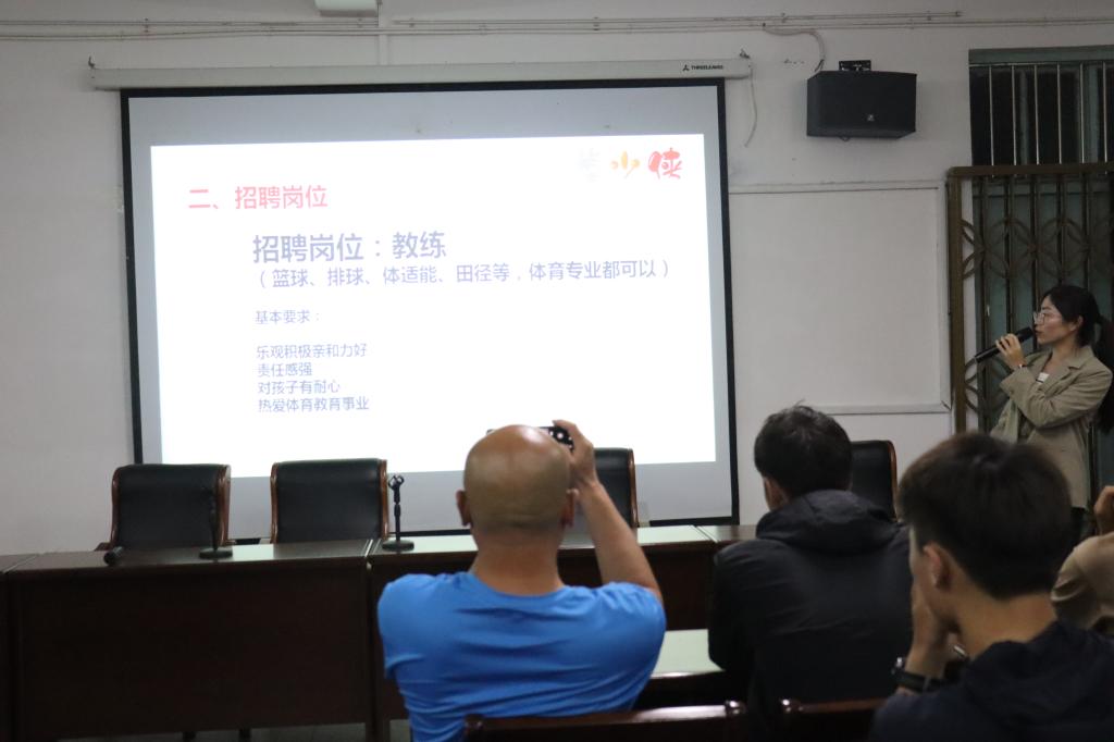 5月9日晚,XK星空在向学楼301召开就业宣讲会暨企业专场招聘会,浙江温岭市堂少侠体育培训有限公司参与宣讲,2020级毕业生以及2021级学生参加宣讲会,宣讲会由院学生科副科长路鹏主持。