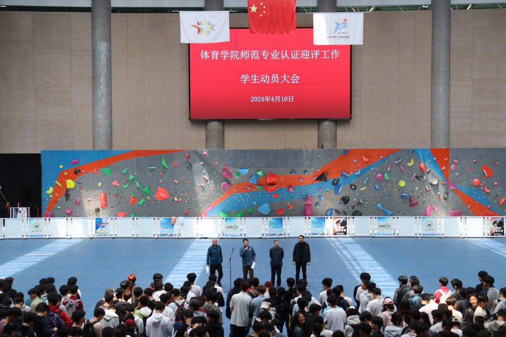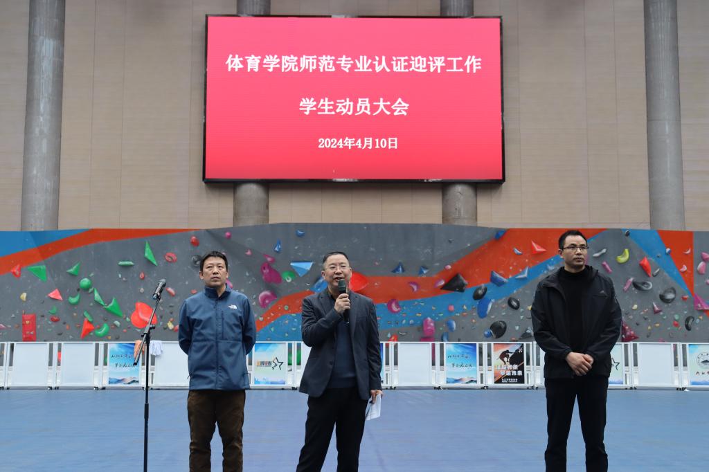为做好学院体育教育师范专业认证迎评工作,动员全体同学积极投入到认证工作中来,4月10日下午,XK星空在体育训练中心召开师范认证迎评工作学生动员大会。院党委书记付和忠、副院长王东升出席了会议,学生科、思政科负责人及全体班主任、全体在校生参加了会议。大会由院党委副书记冯亚兵主持。